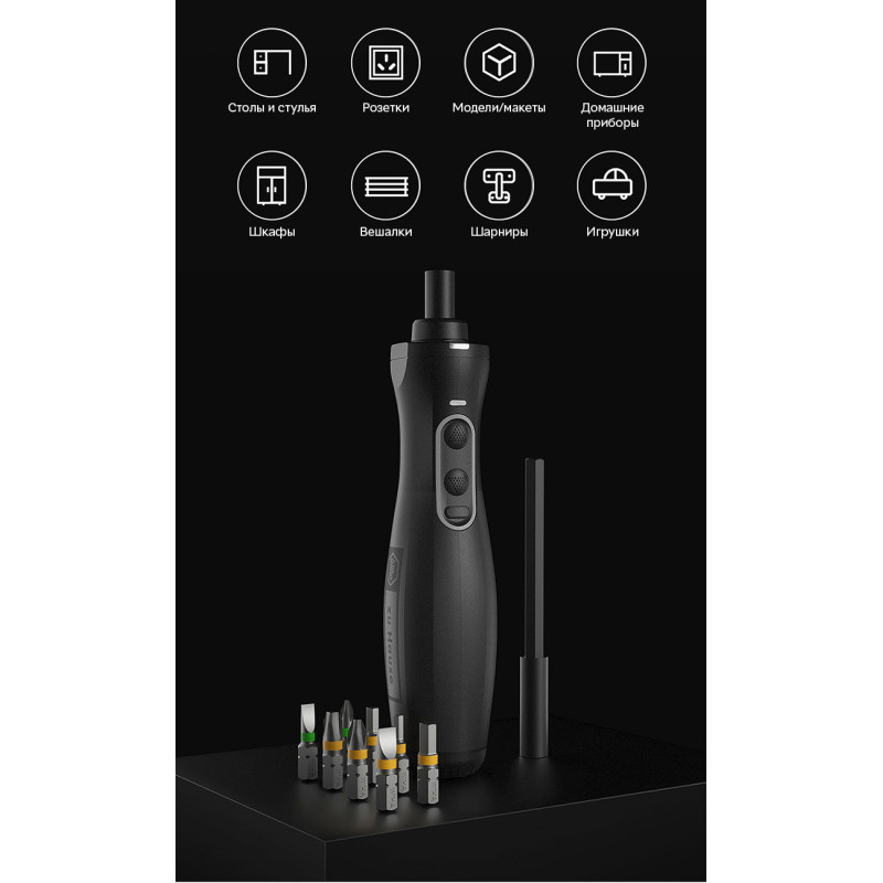 Магнітний двигун, що використовується в інструменті, здатний розвивати крутний момент до 1 Нм. Ви легко зможете зібрати меблі, обслужити побутову техніку і взаємодіяти з електронним обладнанням.