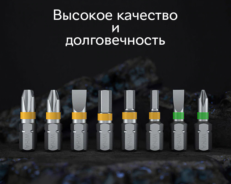 Всі біти виконані з легованої сталі S2 з антикорозійною обробкою та мають твердість 60HRC.