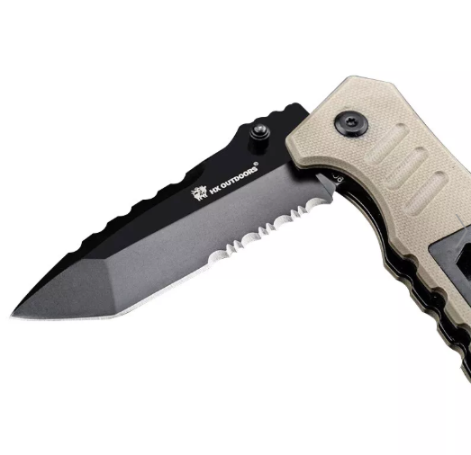 Міцне лезо виготовлене із хромистої нержавіючої сталі з великим вмістом вуглецю. Він стійкий до корозії, тому має тривалий термін служби. Швидко розрізає мотузку та інші предмети. Воно стане чудовим помічником за умов дикої природи.