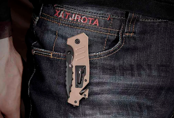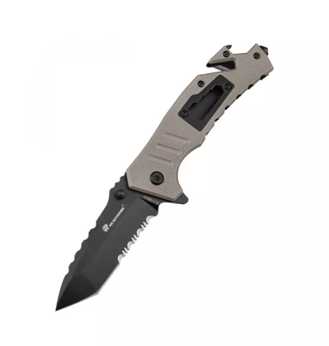Ручка ножа зносостійка і має протиковзку структуру, завдяки чому мультитул зручно тримати в руці. Ніж можна використовувати як штопор, канаторез, гайковий ключ і конус за будь-яких погодних умов.