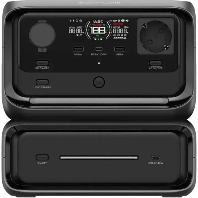 Підключення додаткового акумулятора до River 3 Max відкриває можливість швидкого заряджання через порт USB-C з потужністю 140 Вт. Це дає додаткову свободу використання пристрою. Завдяки технології Pogo Pin, акумулятори підключаються без проводів та додаткових кріплень. Всі з'єднання надійно фіксуються за допомогою затискачів, що унеможливлює використання кабелів або гвинтів. Підтримує підключення акумулятора EB300 (286 Вт·год) або EB600 (572 Вт·год).